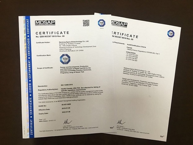 2019年1月23日,南通伊仕生物技術(shù)股份有限公司(以下簡稱“公司”,證券代碼:835749)收到了由南德意志集團TüV 簽發(fā)的MDSAP證書,標志著公司順利完成了MDSAP體系的國際質(zhì)量體系認證。