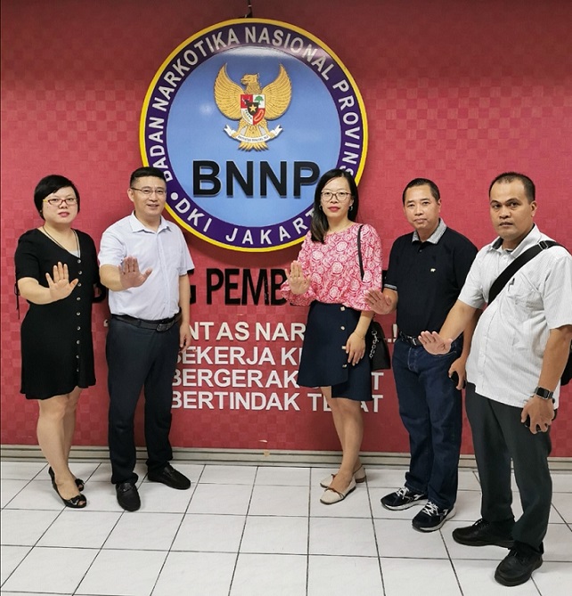 在印度尼西亞期間,我公司代表團(tuán)和由國(guó)家禁毒委員會(huì)副秘書(shū)長(zhǎng)、中國(guó)禁毒基金會(huì)秘書(shū)長(zhǎng)李憲輝率領(lǐng)的國(guó)家禁毒委代表團(tuán)一起參觀了印度尼西亞麗都國(guó)家禁毒中心所屬的禁毒培訓(xùn)中心、國(guó)家毒品實(shí)驗(yàn)室和禁毒康復(fù)中心,了解了印度尼西亞毒品預(yù)防教育、禁毒培訓(xùn)、毒品濫用監(jiān)測(cè)、和戒毒康復(fù)等工作情況。同時(shí)應(yīng)客戶邀請(qǐng)下,國(guó)家禁毒委同我公司貿(mào)易團(tuán)隊(duì)一起參觀了客戶公司,了解毒檢產(chǎn)品在印尼市場(chǎng)的銷售情況。