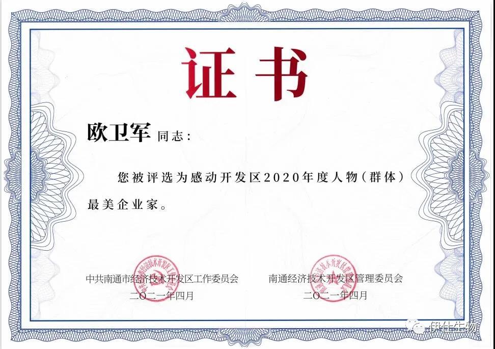 歐總是南通市中青年科學(xué)技術(shù)帶頭人,2020年度江蘇省企業(yè)“創(chuàng)新達(dá)人”,伊仕生物是南通市新冠肺炎疫情防控重點(diǎn)保障企業(yè)。