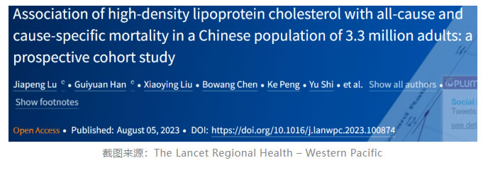 近期發(fā)表于The Lancet Regional Health – Western Pacific的一項(xiàng)研究,旨在全面評(píng)估中國人群中HDL-C與全因死亡率和病因特異性死亡率的關(guān)系,并評(píng)估高HDL-C對(duì)比低HDL-C的死亡率,從而為人群層面的HDL-C管理策略提供新的知識(shí)和深入的見解。