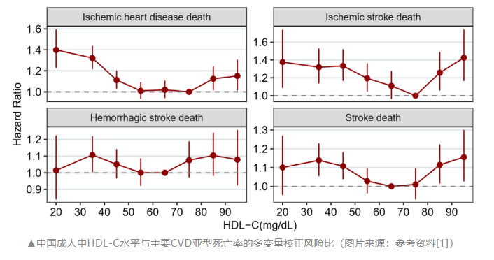 結(jié)果顯示,低HDL-C和高HDL-C均與死亡風(fēng)險(xiǎn)增加相關(guān)。該研究推薦50 mg/dL~79 mg/dL作為中國成人HDL-C的最佳范圍。正確管理低HDL-C和高HDL-C,可給血脂異?;颊邘慝@益。論文指出:“該研究是第一個(gè)在近340萬中國成人中全面評(píng)估HDL-C與全因死亡率和病因特異性死亡率之間關(guān)系的研究”。